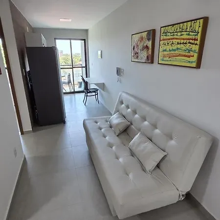 Jardim Dos Carneiros Tamandare Flat 208 Apartment has a balcony, a living room, and a fully equipped kitchen, and comforts such as air conditioning and a washing machine.